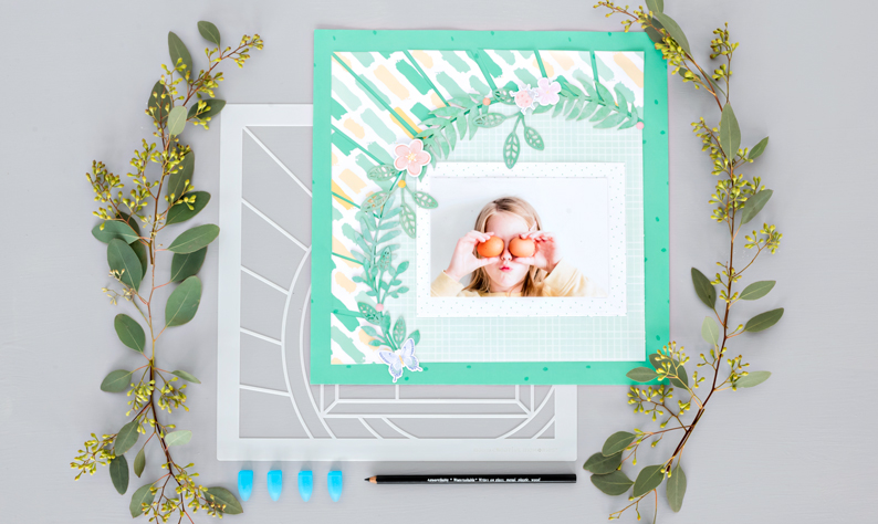 There are so many unique layouts that you can create with Recipe Templates! Try rotating the template, using different paper packs and color combinations or whatever else strikes your fancy! Check out these finished layouts that were made using the Blend & Bloom collection with the Collage Wreath Recipe Template!