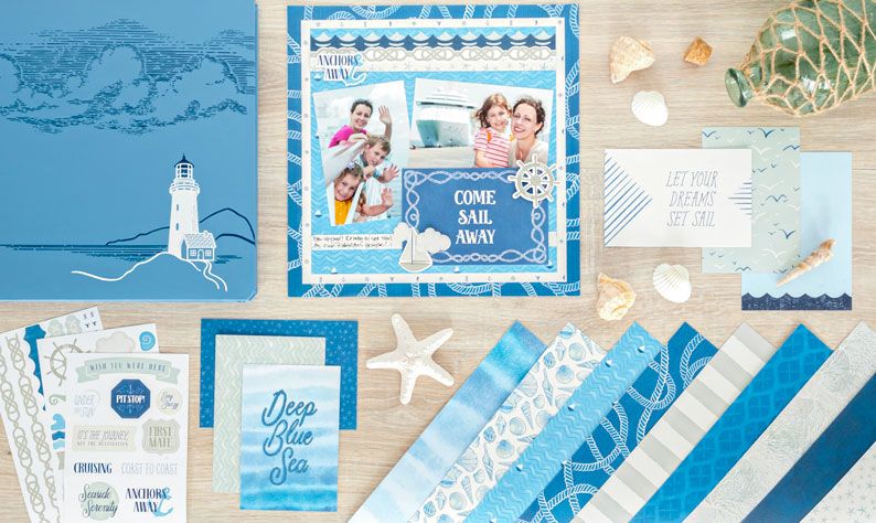 It doesn’t get more aquatically awesome than this nautical scrapbook layout. We’re curious — what types of photos do you see yourself filling this layout with? Comment below!