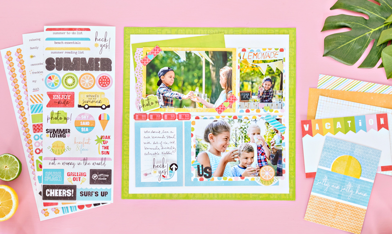 Are you looking to add some refreshing pages to your album this year? Do you want your summer photos to pop and stand out alongside vibrant shades and juicy decorations? (We’re betting we already know the answers… ) For all your days spent in the sun, you need the Citrus Summer collection! This mouth-watering summer scrapbook layout idea is sure to make the memories sweeter than ever! Check it out!