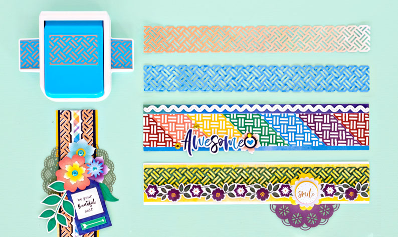 As it so happens, when you combine the Rainbow Rush collection with the Basketweave Border Punch, you get superbly vivid scrapbook borders! Which one do you like the most? Comment below and let us know!