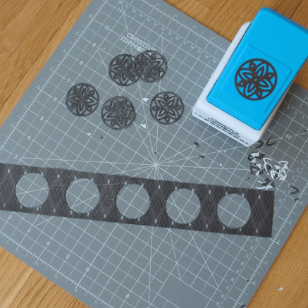 Step 3: Punch five medallions from Black Cardstock. Place them in the circles created in the previous step.
