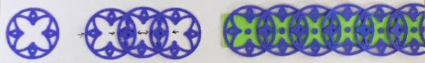Step 7: Using the 12 pieces leftover from the medallions you cut the middles out of, make a border by carefully linking the tabs. Do this by hooking underneath and pulling through. (Note: You can also use leftover punched circle pieces or gems for the middle if desired.)