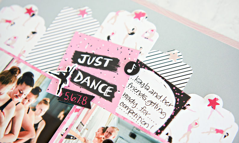 Do you have a dancer in your family? If your weekends involve high kicks and hair ties, we’ll take that as a yes! Inspired by the graceful movement of a prima ballerina flying across the stage and practiced positions expressing all kinds of personality, the Just Dance Theme Pack kit adds lyrical love to any dance scrapbook layouts you can dream of! Check out this layout and dance your way through the design!