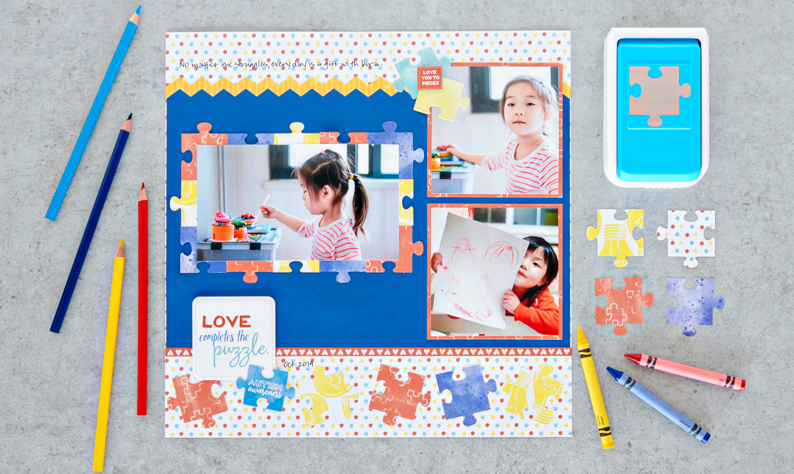 Stay Connected with this Puzzle Scrapbook Layout Idea