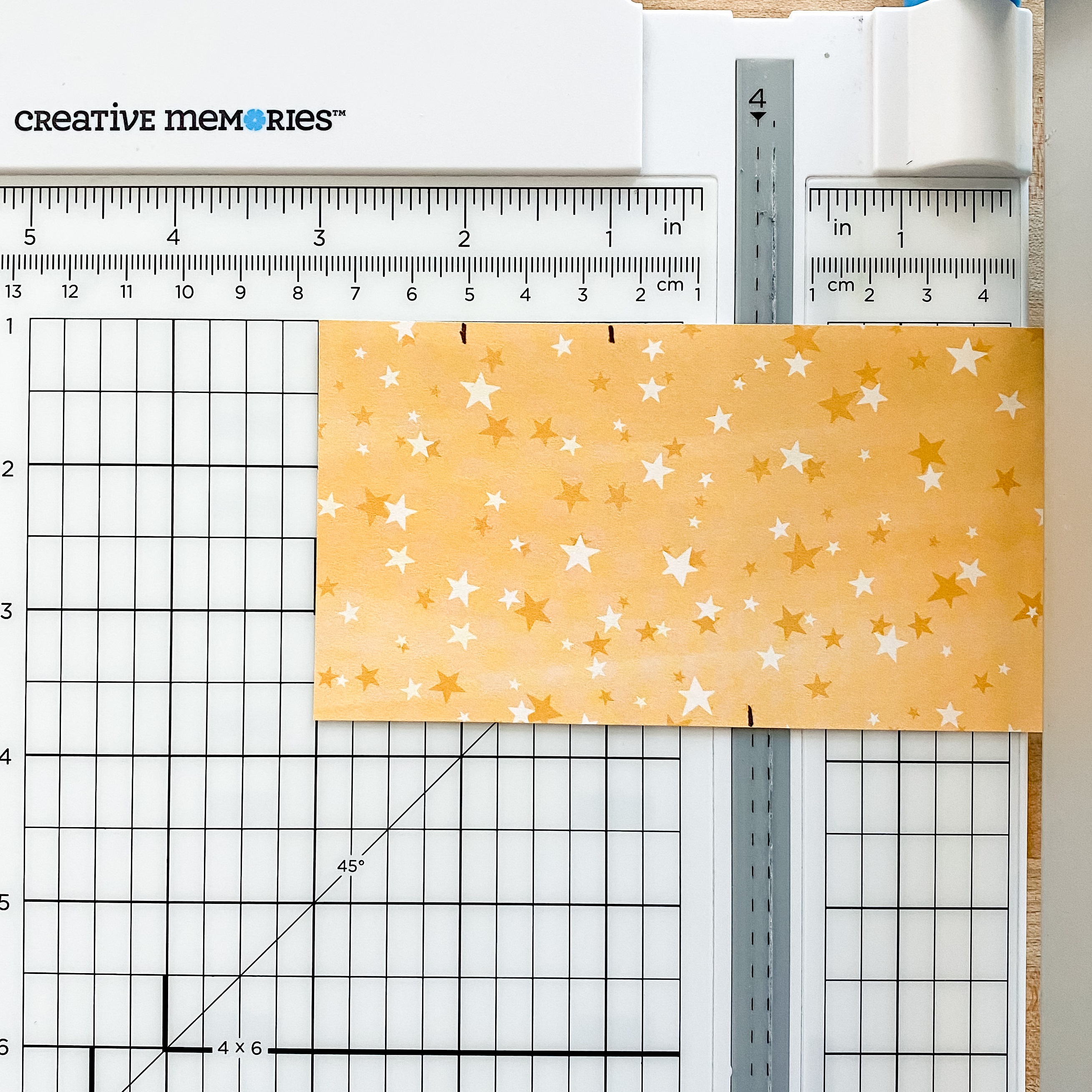 Step 1: Using the Clouds Border Maker Cartridge, punch a border from a piece of patterned paper. Trim to measure 12″ x 2-3/4″ to create your base.