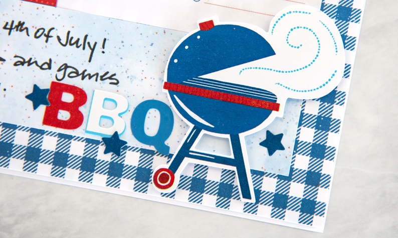 Oh, say can you see — it’s the Festive Fourth collection! This collection is made up of all the elements of the Fourth of July we love, including fireworks, barbecues, family get-togethers and more. Take a look at this patriotic scrapbook layout and start coming up with your own ideas for how you’ll integrate the red, white and blue into your projects!