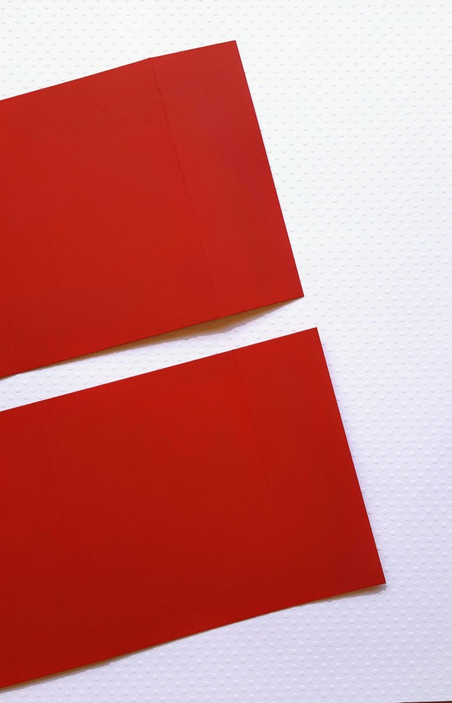 Step 1: Cut two strips of the red cardstock to measure 4-1/2″ x 12″.