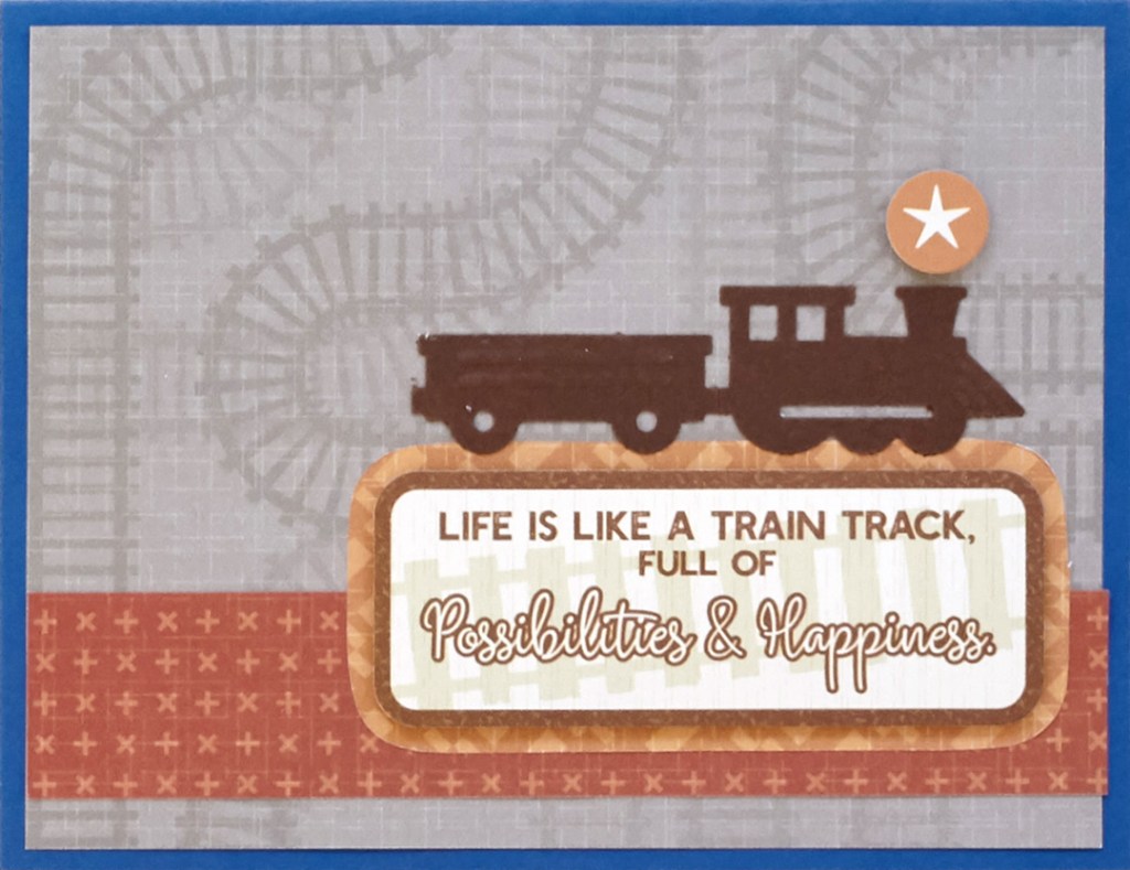 Step 5: Using the Locomotive Punch, punch with Rich Brown Solid Cardstock. Adhere the pieces to the card.