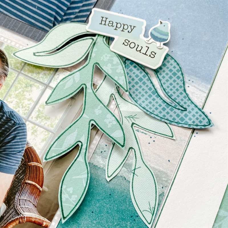 An artsy vine border and cut-out stenciled leaves was just what this summer layout needed to make it pop.