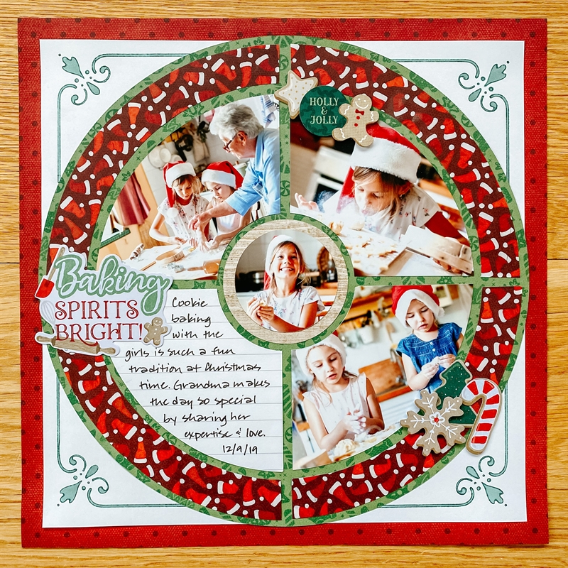 Adorning the corners of this layout with a drawn decorative added a whimsical touch to this Christmas layout featuring the Slice of Life Recipe Template.