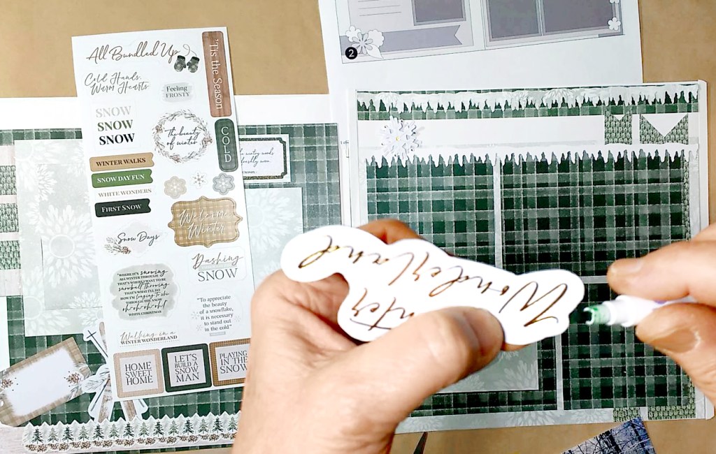 Using the bold tip around the edges of a title embellishment to enhance – great tip!