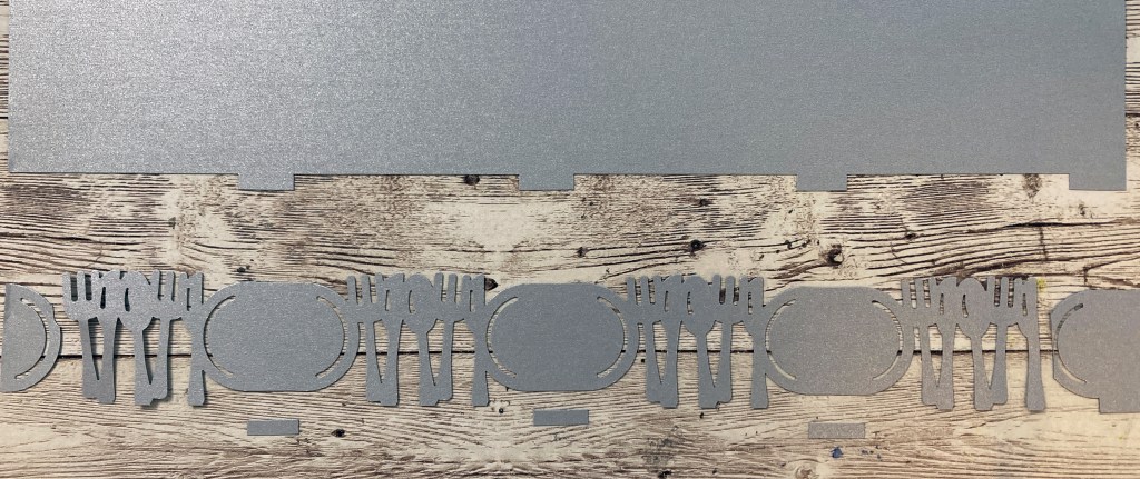 Step 2: Cut the reclaimed wood paper to measure 2″ x 11-1/4″ and 2-1/8″ x 11-3/8″. Round the corners with the 2-Way Corner Rounder. Flip the larger piece over and add the smaller piece on the top. Adhere to the base.