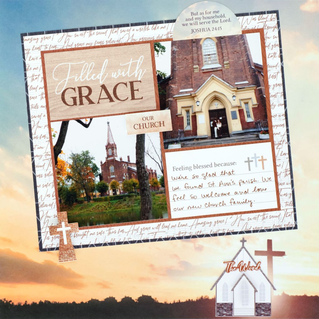 From the majestic scale of Europe’s impressive cathedrals to humble buildings turned into sites of spiritual retreat, places of worship can invoke inspiration, carry on praise and hold beautiful ceremonies and rites. And if you want to continue to raise your spirits on high, take a glance at this faith scrapbook layout — the Keep the Faith collection definitely blesses divine designs!