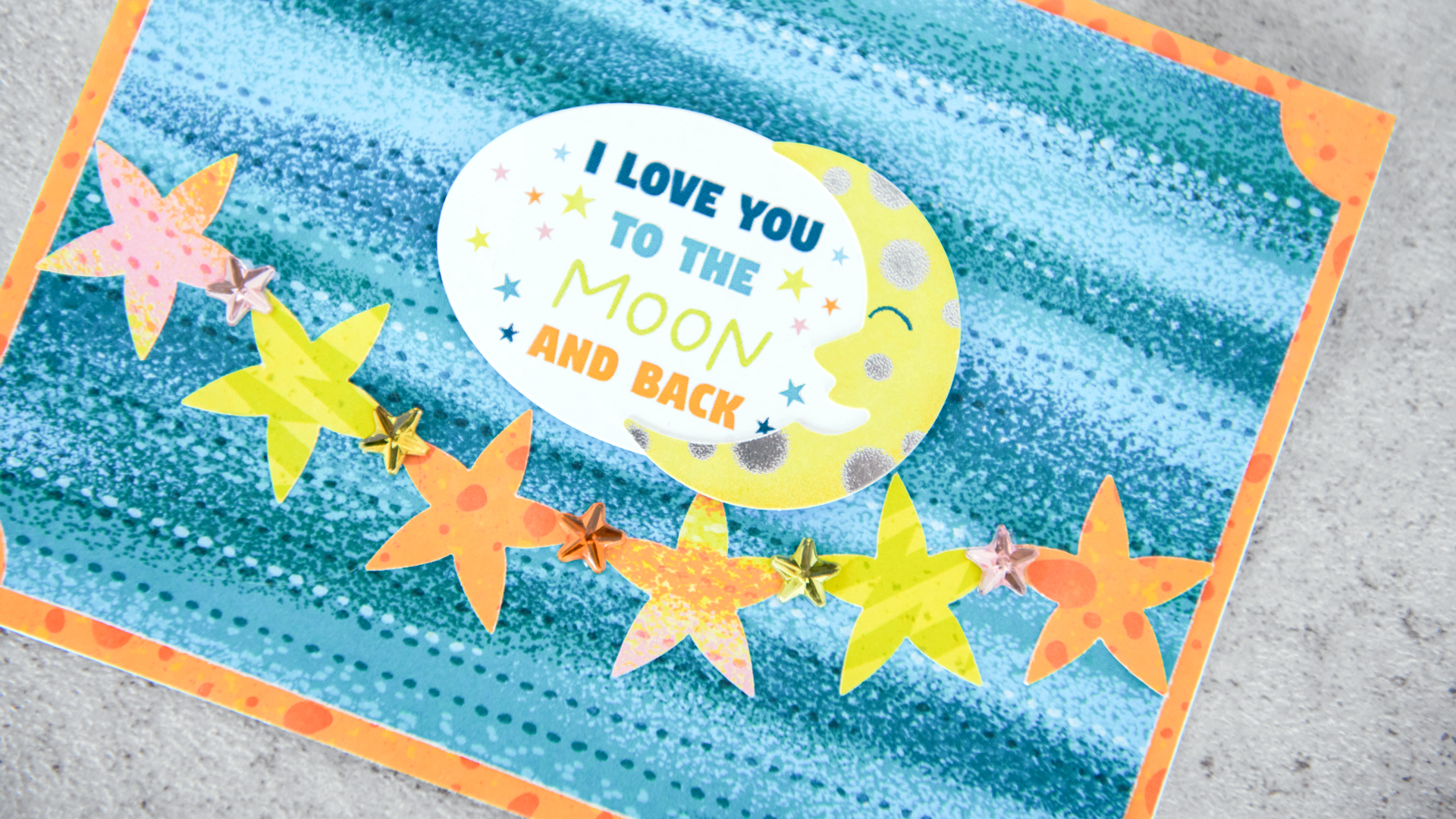 Step 3: Adhere the “I love you to the Moon and back” and moon stickers with Foam Squares.