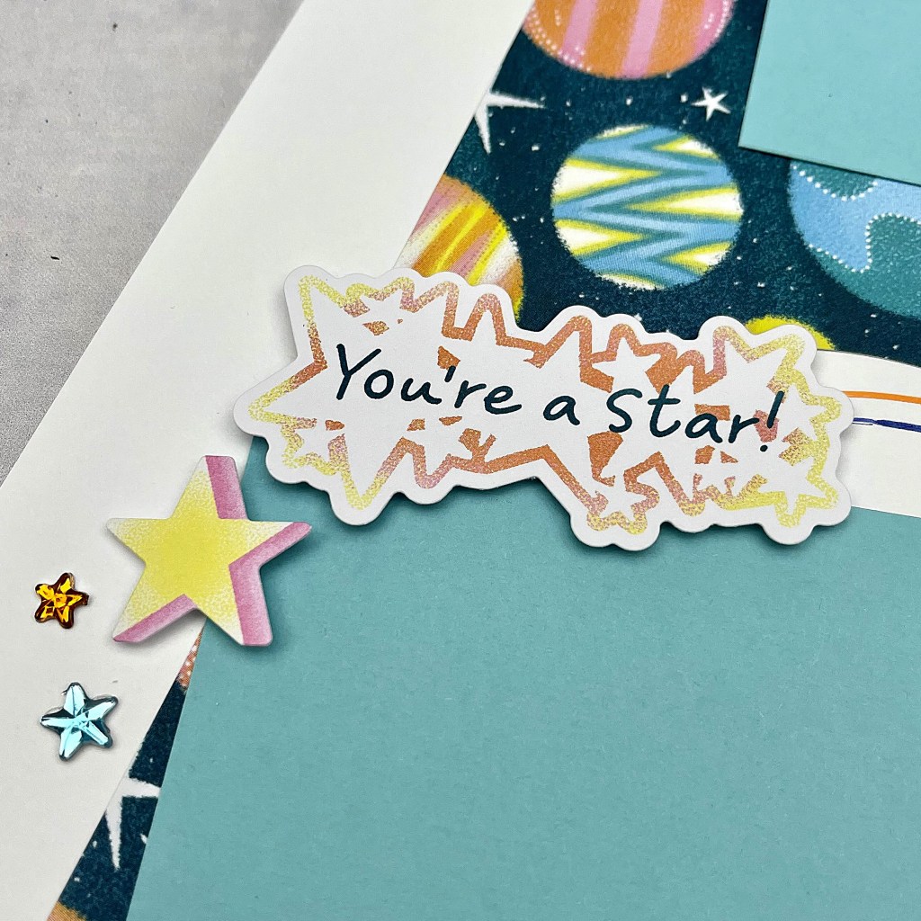 Watch the video to learn how to both cut and draw circles to create this layout that is out of this world!
