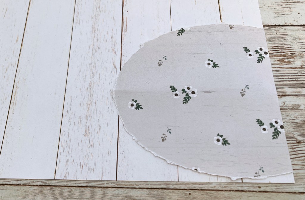 Step 2: Using the largest Custom Cutting System Oval Pattern, tear an oval from mini anemones paper. Trim off the oval by 2″. Add the larger piece to the lower-right side of the base.