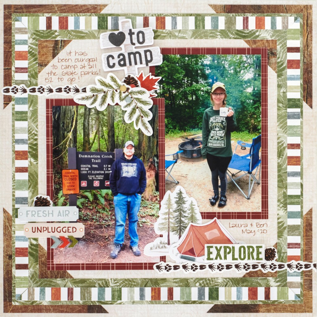 What do you like most about camping and this camping scrapbook layout? Have you gone camping recently? If so, where? Share your answers down below!