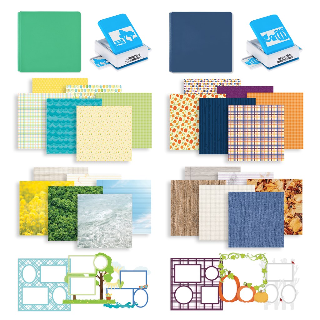 For a limited time, you can earn up to 2 exclusive gift bundles FREE with qualifying orders! Each bundle contains a limited-edition 12×12 album cover, designer paper pack (6/pk), texture tone-on-tone paper pack (6/pk), laser-cut paper pack (3/pk) and border punch, but they each bring their own unique theme — You-Pick-It Bundle 1 geared toward summer and You-Pick-It Bundle 2 themed toward fall.
