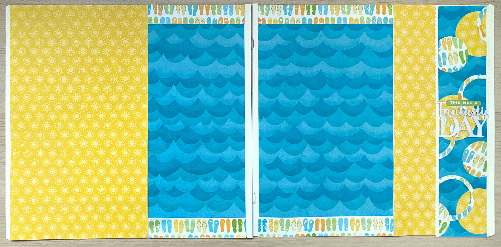 Step 5: Place cut paper on a double-page spread as shown, adding the Fantastic Day border.