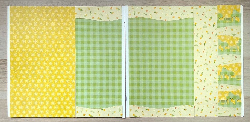 Step 4: Place cut paper on a double-page spread as shown, adding the border strip of your choice.