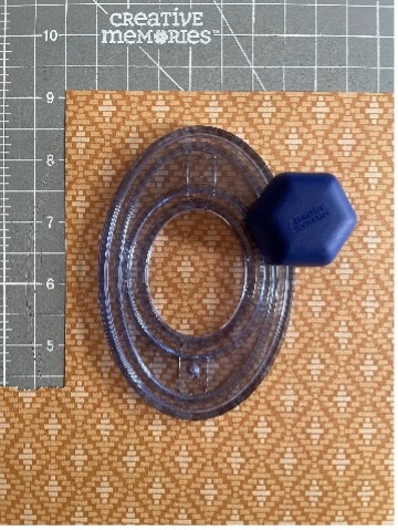 • With the second-smallest Custom Cutting System Oval Pattern and the Blue Blade, cut an oval on the outside edge with marigold diamonds designer paper.