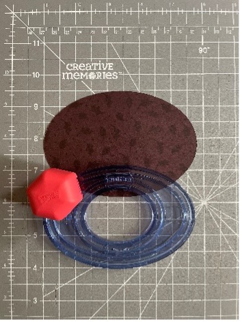 • With the second-smallest Custom Cutting System Oval Pattern and the Red Blade, cut an oval on the outside edge with burgundy leaves tonal paper.