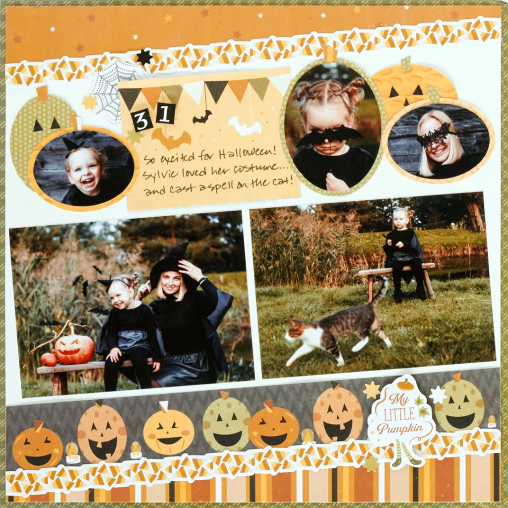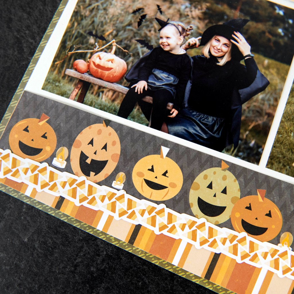 What traditions or events do you like to celebrate on and around Halloween? How will you be celebrating All Hallows’ Eve this year? What is the most gourd-geous detail of this Halloween scrapbook layout? Cast your thoughts and opinions in the comment below!