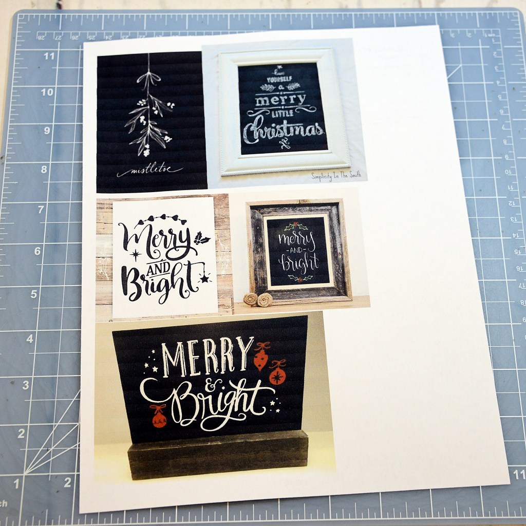 Helpful Hints: To align your title, start in the middle of your top line on the cardstock and add the middle letter of your title first. Then add adjacent letters working forward and backward. Use both the fine and round tips of the White Chalking Pencil to add width and details to your title letters. Search the internet for examples of “Christmas Chalk Art” to copy. Practice first.