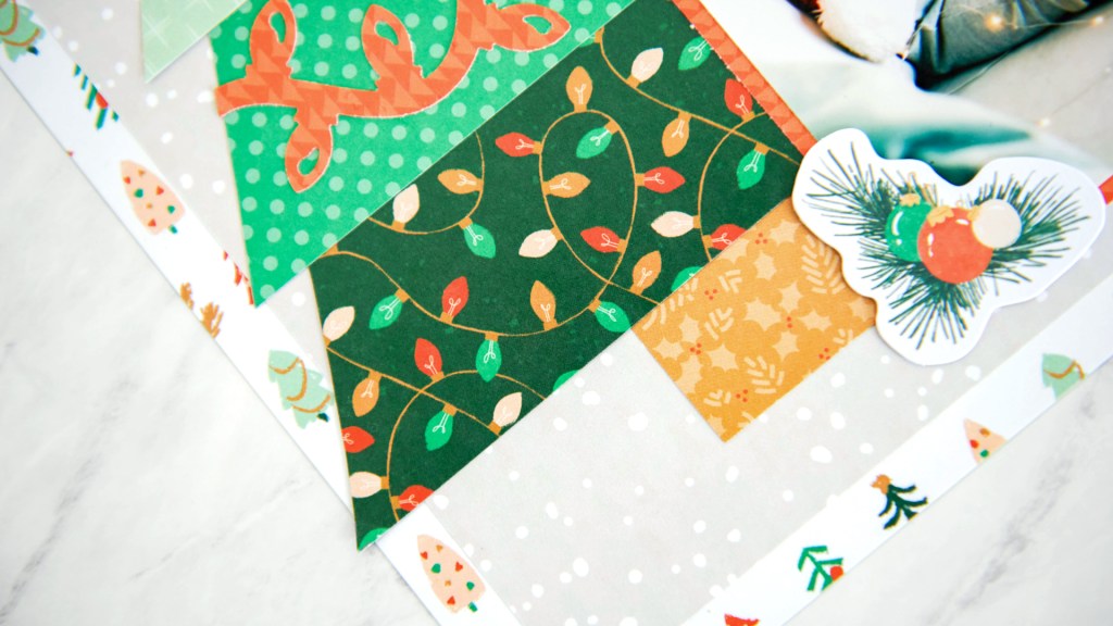 Step 1: Use the various Christmas trees paper for the base of this layout.