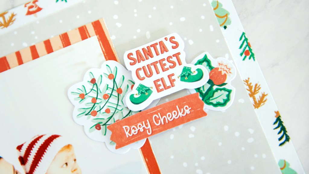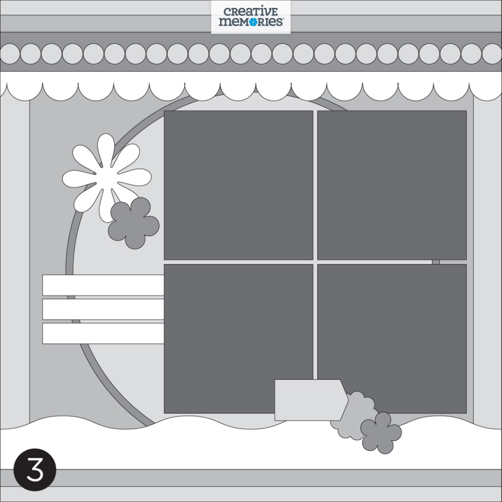 Step 8: Add laser-cut borders and stickers as shown, adhering some with Foam Squares.