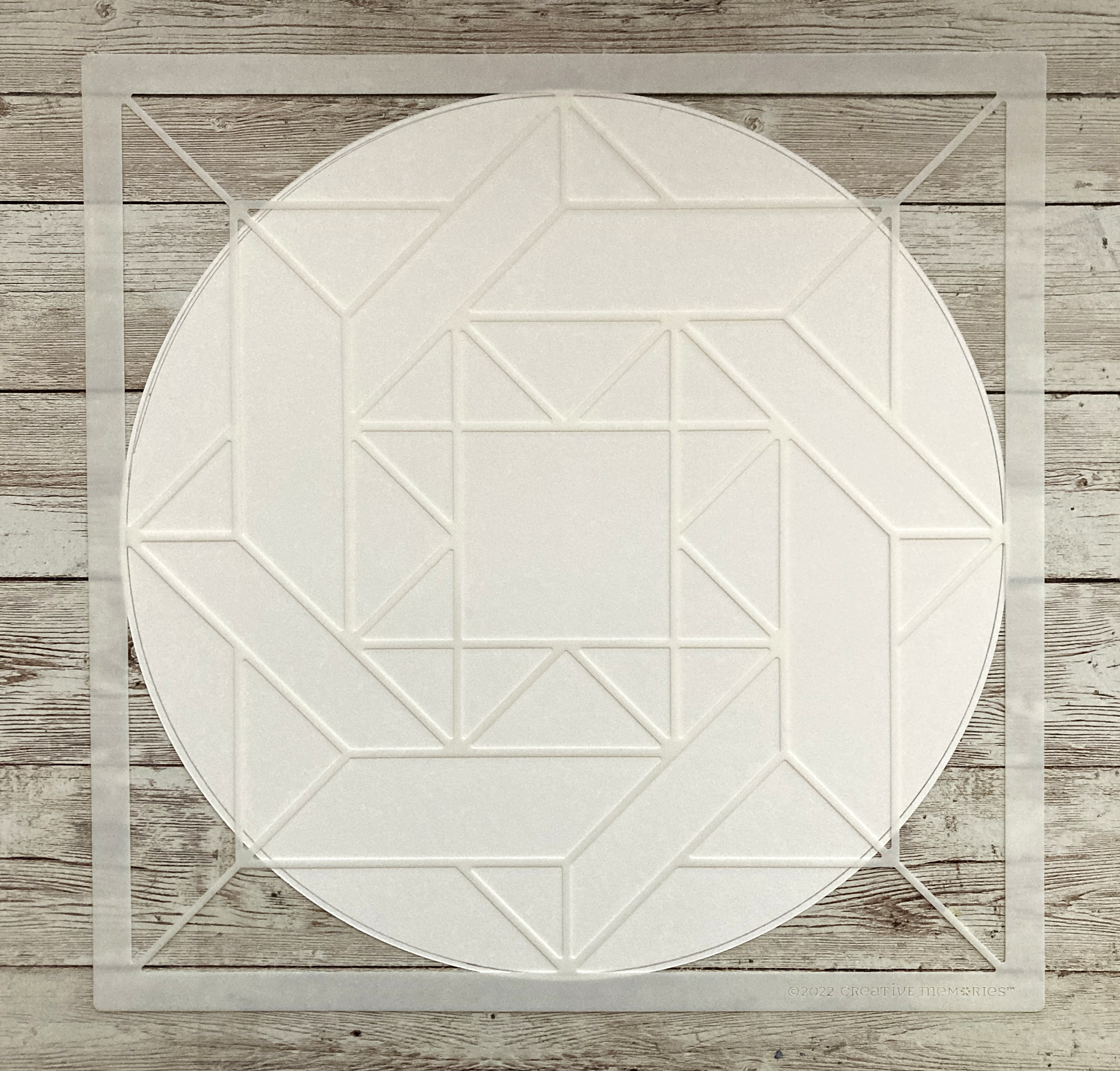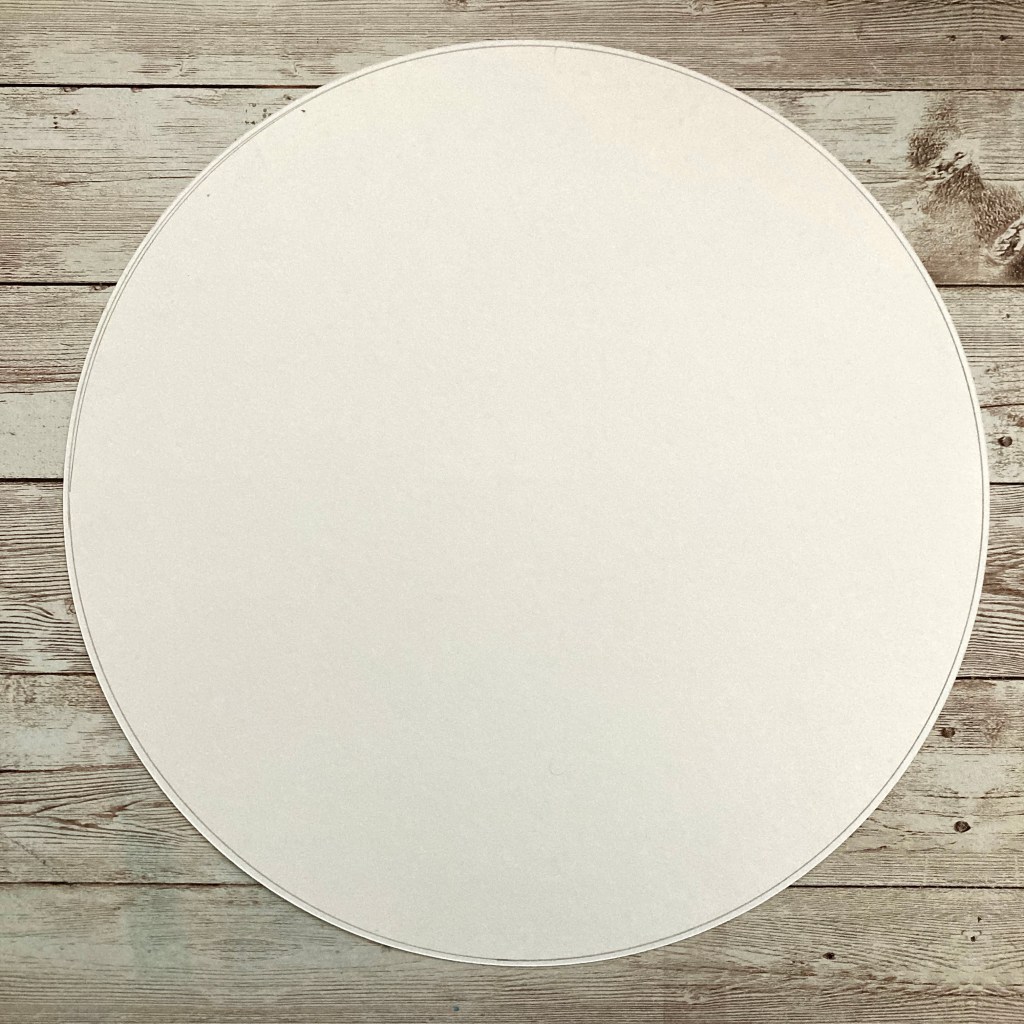 Step 1: Cut a circle using the outside edge of the Jumbo Circle Custom Cutting System Pattern with the Red Blade from White Solid Cardstock. Without moving the paper and pattern, trace the outside of the pattern with a pencil.