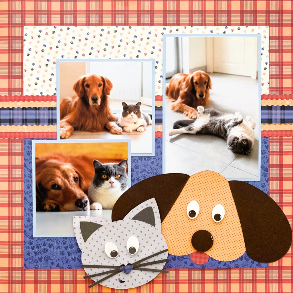 Love at Fur-st Sight: Cat and Dog Scrapbook Layout