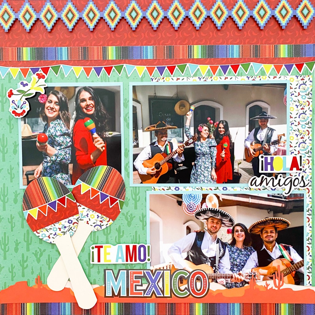 Hello! Or should we say, “¡Hola!” Today is all about magnificent Mexico, for there are so many excelente activities and excursions to do in this country — world-class scuba diving, climbing ancient Mayan ruins, swimming in cenotes, exploring colonial towns and indulging in the delicious local cuisine (maybe a margarita on a sandy beach, anyone?). Warm up to this Mexico scrapbook layout (it’s still winter here at CM Home Office, so we’ll take the heat!) and feel the fiesta of fun.