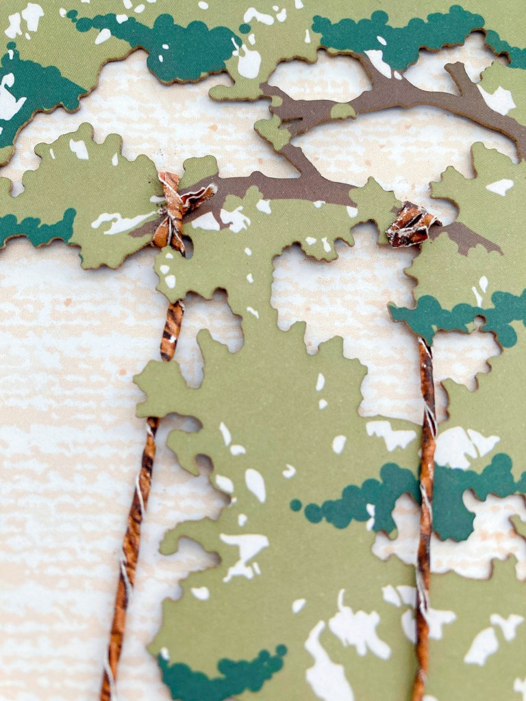 Step 2: Adhere the framing forest floor with tall trees laser-cut paper to the base.