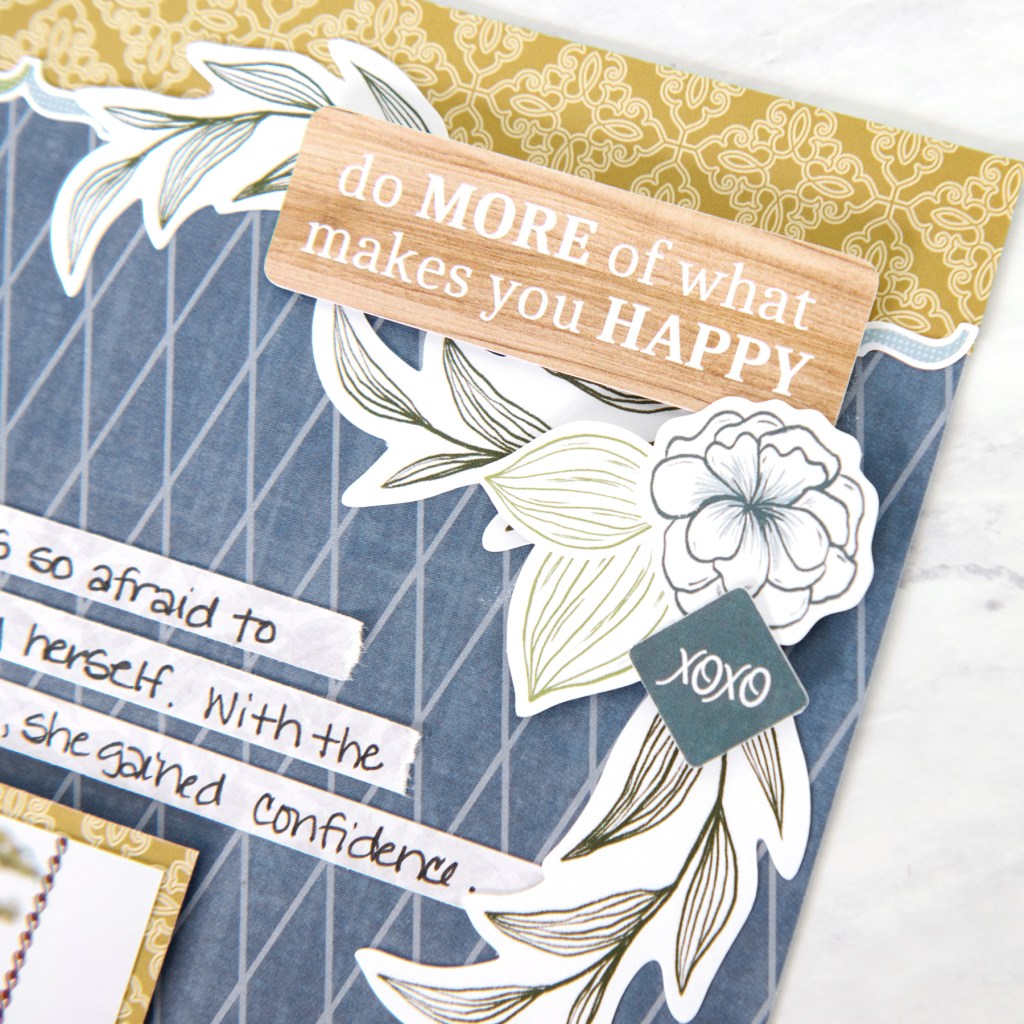 As time goes on, many people come to find out that it’s the “little things” in life that gives us the most joy and happiness. Life’s simple pleasures can come in all shapes and sizes — getting a coffee with a longtime friend, the sun shining through your window with a good book in hand, the tail-wagging greeting from your pet after a long day at work, practicing meditation, baking cookies with your kids or grandchildren and so much more. And to appreciate what’s right in front of you and to remember these everyday (and extraordinary!) moments, you need to craft everyday scrapbook layout, like this special sensation!