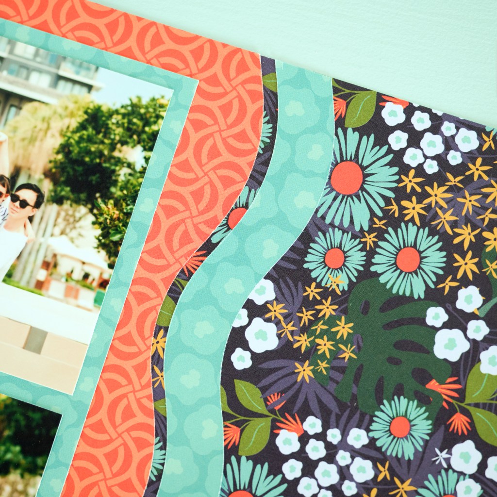 Where was your last warm-weather locale? Hawaii? Cancun? Puerto Rico? Thailand? Colombia? Port Douglas? No matter the place (or the perfect photo opportunities!), the Tropic Time collection is a one-way ticket to scrapbooking fun. You can see for yourself with this tropic scrapbook layout!