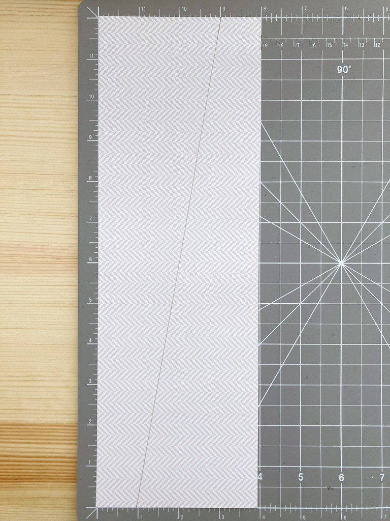 Step 4: Cut a 7-1/2″ x 7-1/2″ from the herringbone designer paper and adhere to the page.