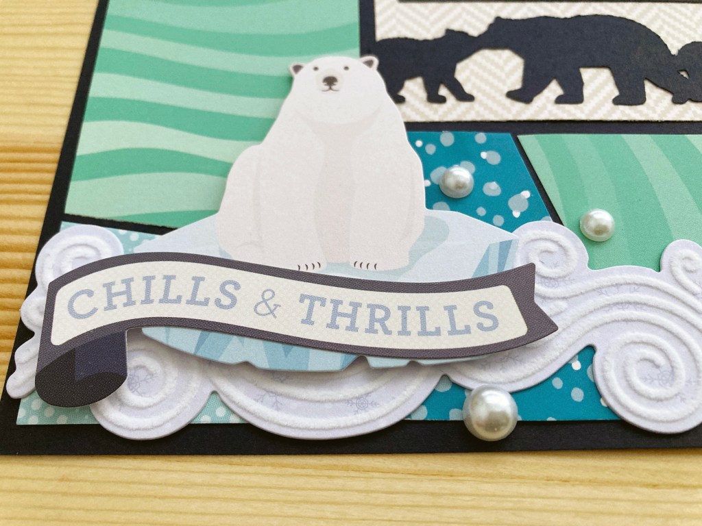Step 5: Use the Polar Bears Border Punch to punch a border from the navy square piece that you cut in Step 2. Add to the page.