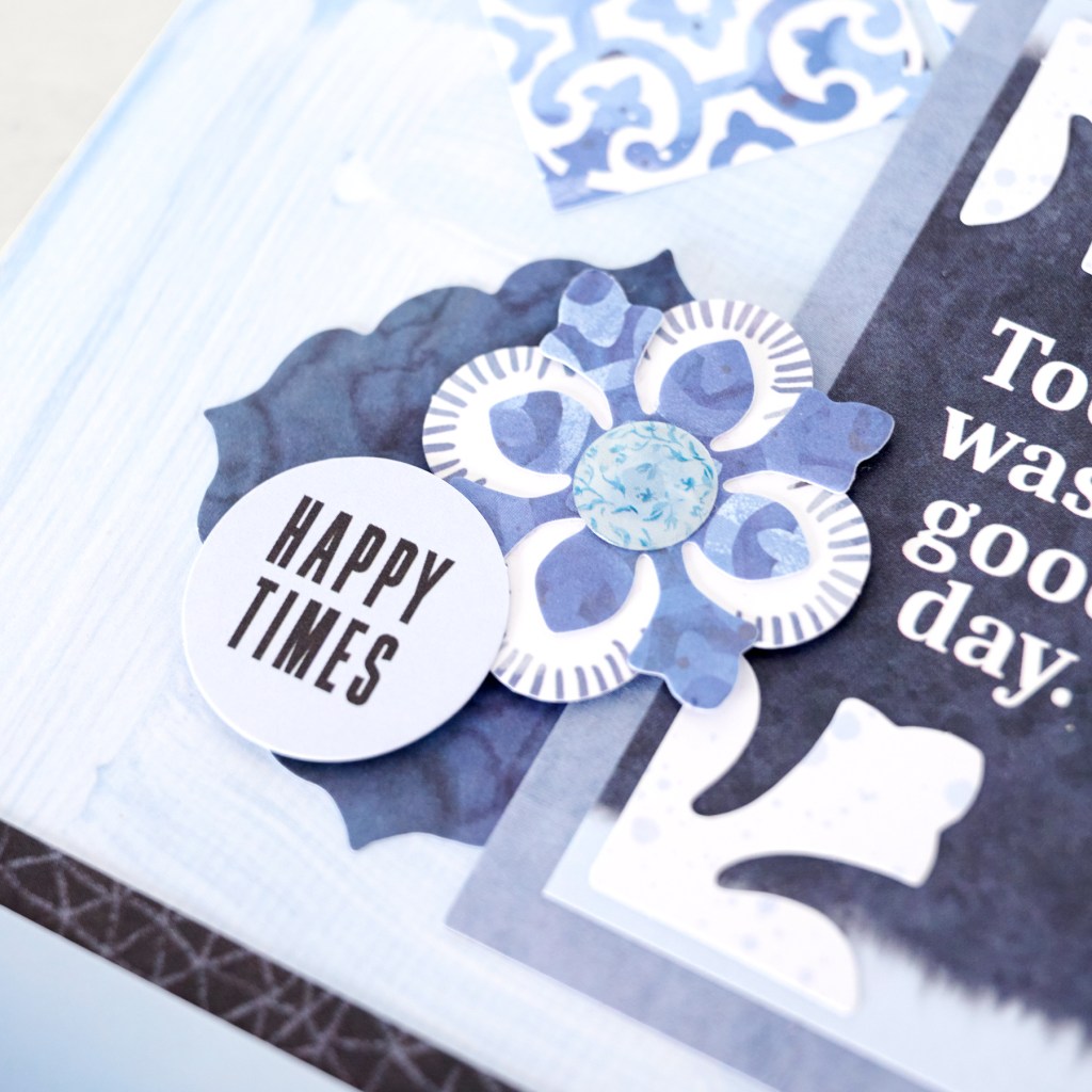 What brings a sense of calm and tranquility to your life? Maybe it’s being outdoors and taking in the beauty of the world around you, going on adventures with loved ones or simply relaxing at your home. Or, maybe it’s all of the above! Often times, a variety of sources layer and piece together to give us that overall feeling of being content… which just so happens to be a few things this blue scrapbook layout encompasses!