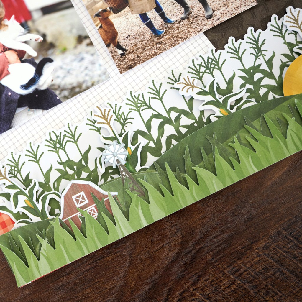 We’re completely in love with everything that has been happening this year in the scrapbooking stratosphere — incredible Virtual Crops, immense community connections, blazin’ Beginner Classes, shared creativity… and continued Completed Album Challenges! If you’ve completed an album in March, then you’ll want to show us what you’ve pieced together in the Virtual Crop Facebook Group for a chance to WIN! Need an idea that is outstanding in its field to finish out your latest album? Take a look at this farm scrapbook layout!