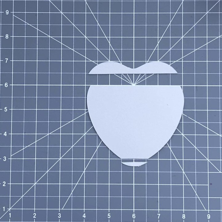 • Use the outside of the smaller heart Gemstone Custom Cutting System Pattern and the Red Blade to cut a heart shape from Beige Solid Cardstock. Trim the top of the heart shape by 1/2” as shown. Cut the bottom to measure 3” height. Trim to round the corners.