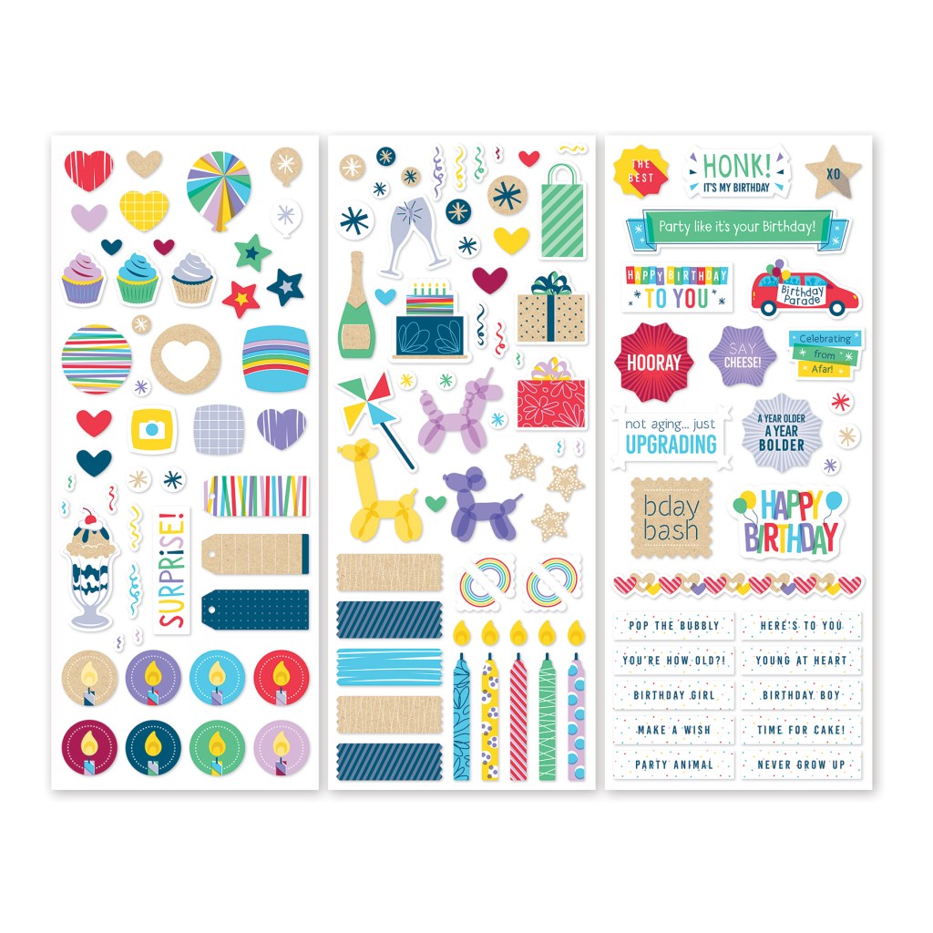 Feel the fiesta on your birthday layouts with the Party Time! Bright Paper Pack, Blue Paper Pack and Stickers.