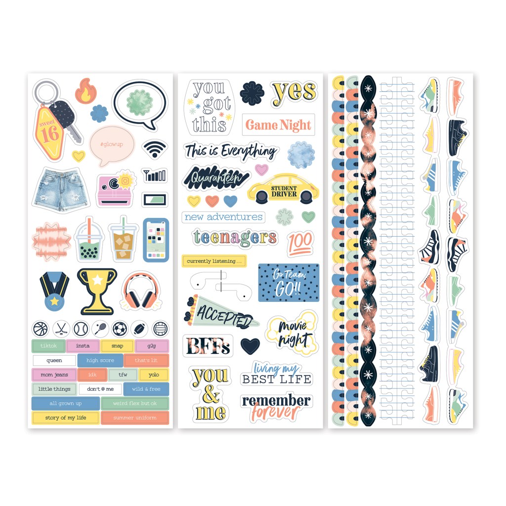 Take it to a teen extreme with the You Got This Stickers, Embellishments and Variety Mat Pack, as well as the coordinating Tie Dye Paper Pack! These scrapbooking supplies are totally cool for sharing memories of group video chats with friends, afternoons sipping cold drinks at the local coffee shop, proud pictures after getting your permit and driver’s license and after-school recreational activities!
