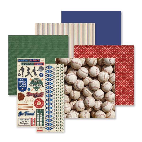 Load the bases and your layouts with the Grand Slam Theme Pack! This baseball scrapbook kit is a winner for your photos of baseball teams with sluggers big and small, afternoons on the bleachers with hot dogs and game-day gatherings.