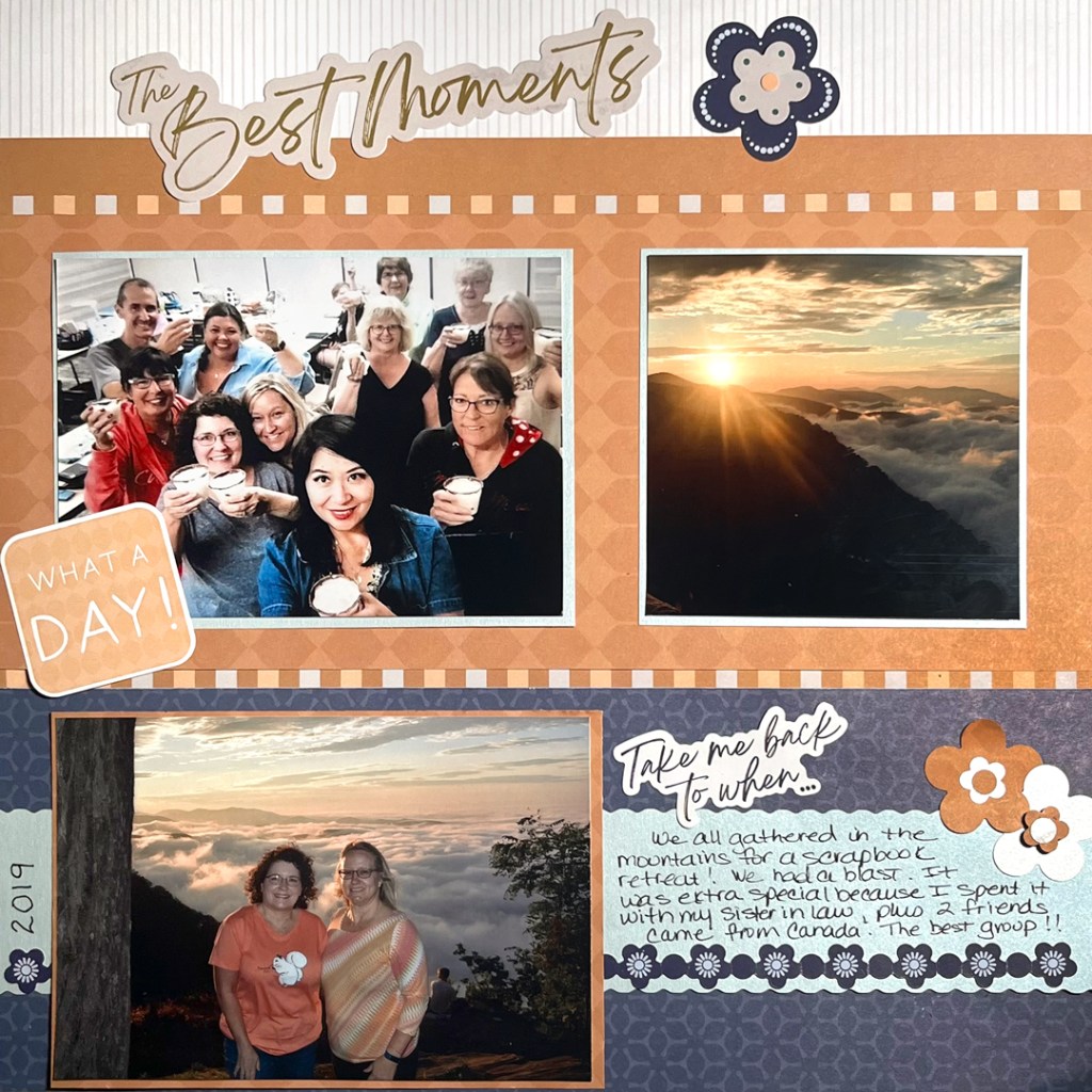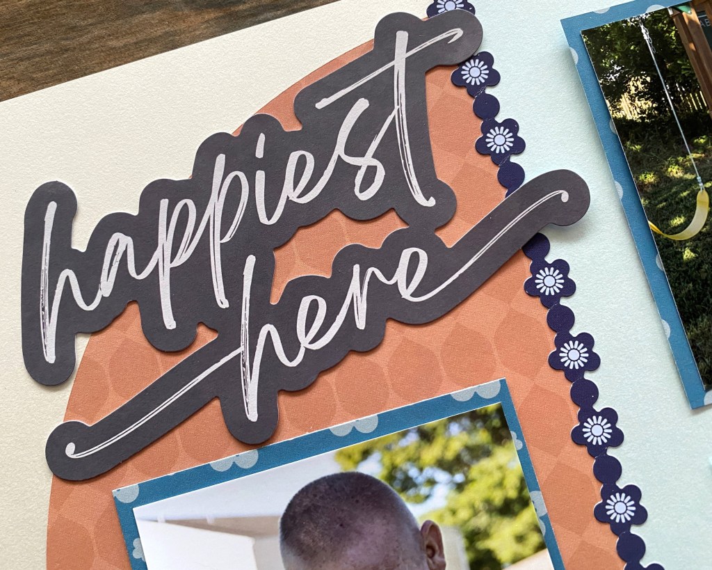 Robyn’s Tip: “To make a plain title stand out, use a fine-tip pen to make an edge around it. Use the 12-inch Decorative Trimmer to make lovely wavy lines. To make flowers use different coordinating papers to add contrast.”