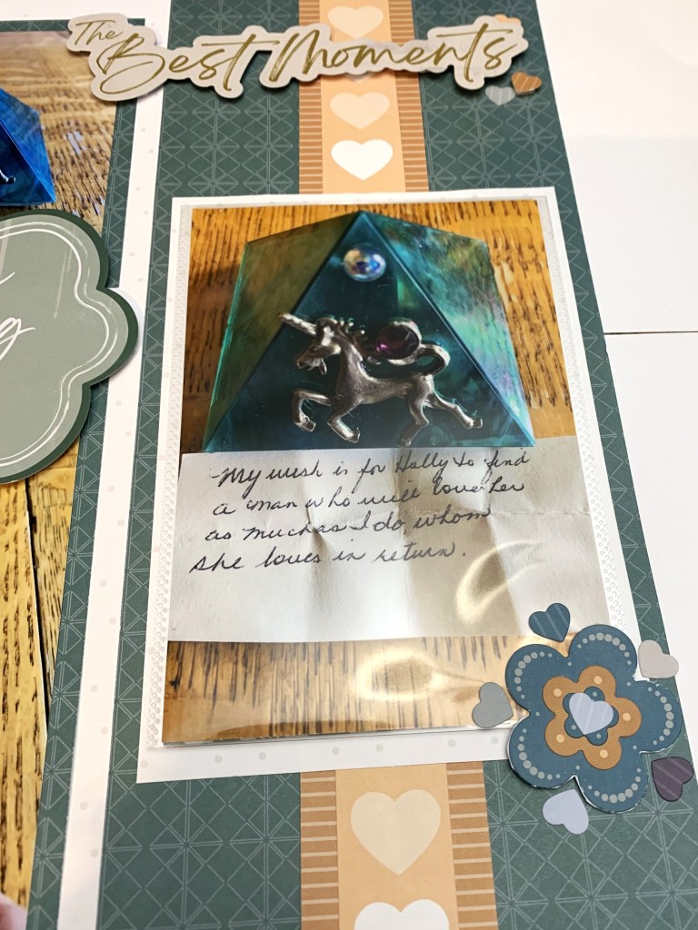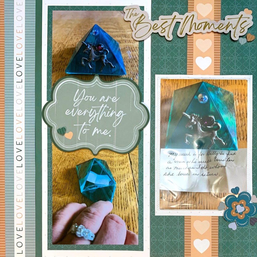 • There was table surface in the top part of the picture with my ring, so I used the embellishment to fill in that space.