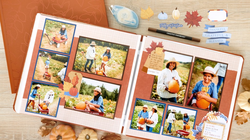 This time of year can be a busy one for many people — family get-togethers, harvest festivals and outdoor markets, Friendsgiving and Thanksgiving, Christmas prep, office parties and more — which also means ample opportunity for photo ops, memory-making and scrapbooking! And it’s only fitting to save those smiles and project piles by partaking in the Completed Album Challenge — going on NOW! Better yet, adding the final finishing (and very much professional-looking!) touch to your album can be a quick and easy breeze thanks to Fast2Fab™ Refill Pages, like this fall scrapbook idea! See for yourself below… and have fun with a fresh take that’s simple to make!