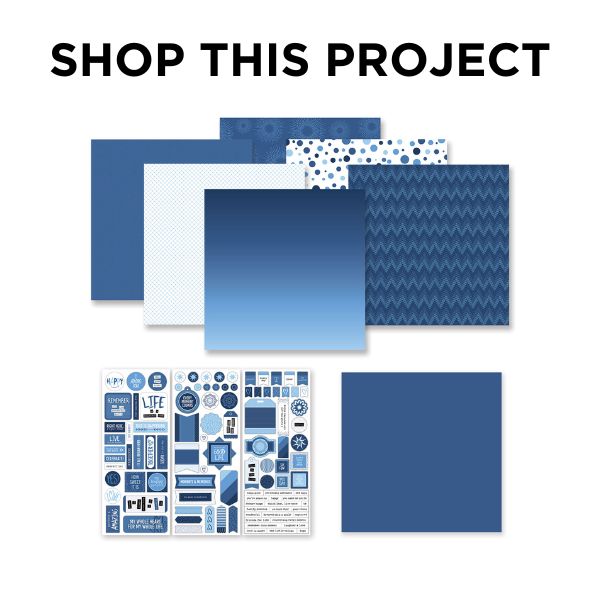 Have you ever heard of ROYGBIV (also known by the name of Roy G. Biv)? It’s an acronym for the hues of the rainbow: red, orange, yellow, green, blue, indigo and violet. Well, we’re focusing our attention on B — blue! This blue scrapbook layout from blog contributor Karyn McDermaid-Rolfe is the perfect primary project and will have you exclaiming “Blue-ya!”