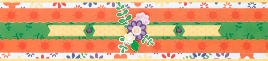 Step 3: Using the Original Border Maker System and Banner Border Maker Cartridge, punch a border with floral designer paper. Trim to 12? x 1-3/16? and adhere on the border.