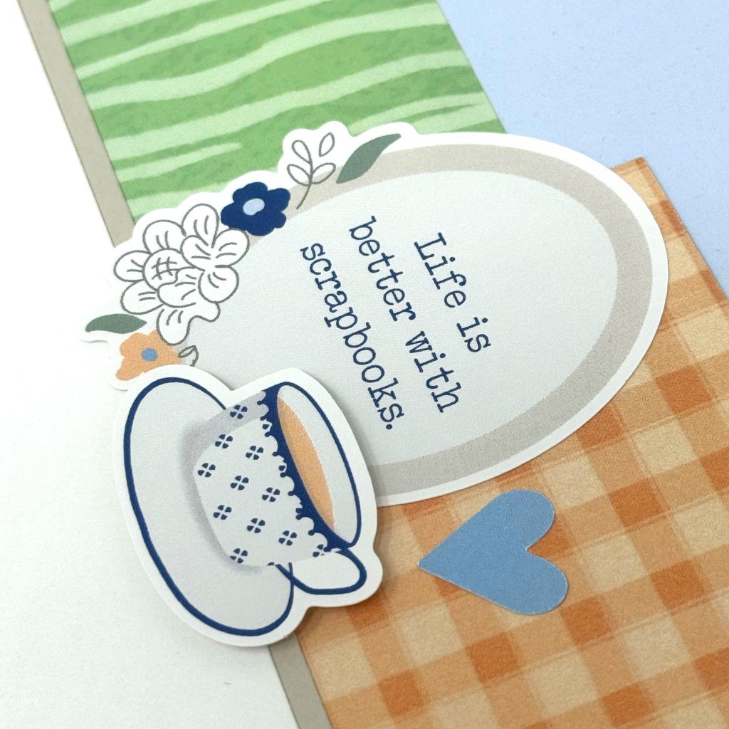 Nicole’s Tip: “If you’re working with bold or vibrant papers, pulling in a solid cardstock color can help balance your page!”